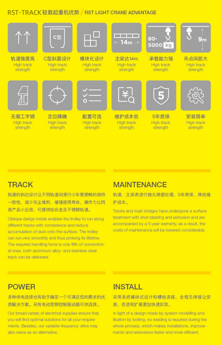 可以實現(xiàn)更大的跨度應用;與同等鋼質軌道設備相比,重量更輕、噪音更低;