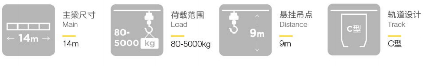 起重量在250kg-2000kg之間,主梁總長可達10m;